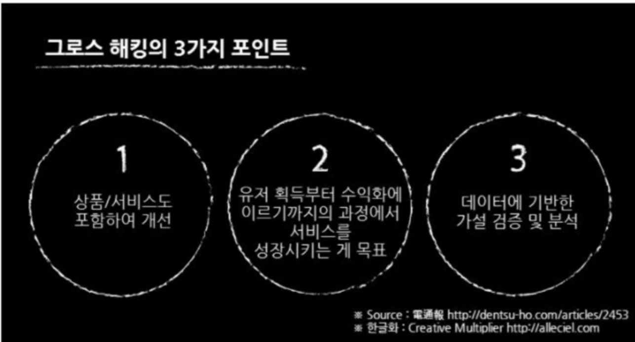 ✔️그로스 해킹은 마케팅 업무 같아 보일 수 있지만 프로덕트의 성장이 주요 업무인 서비스 기획자가 파악해야 하는 업무이기도 하다.